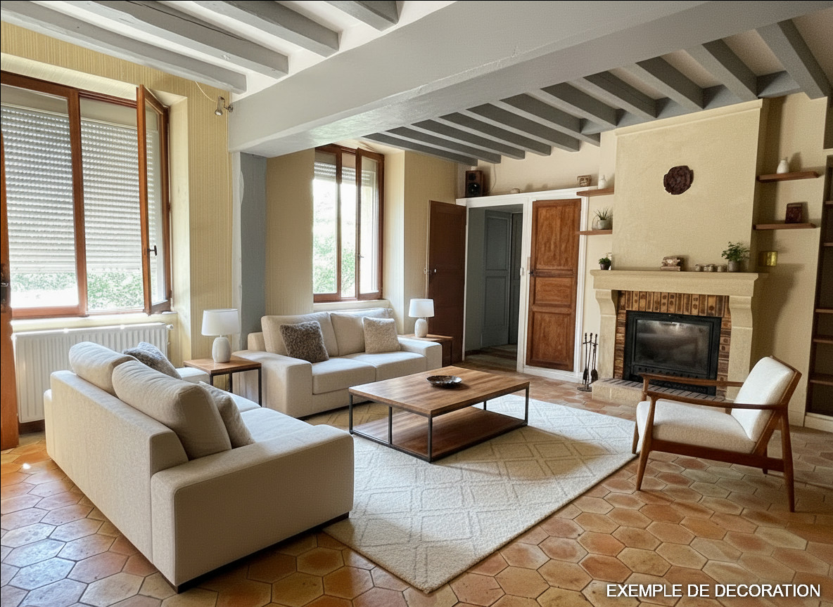 - Un séjour d'environ 39m² avec ses poutres apparentes et sa verrière a...