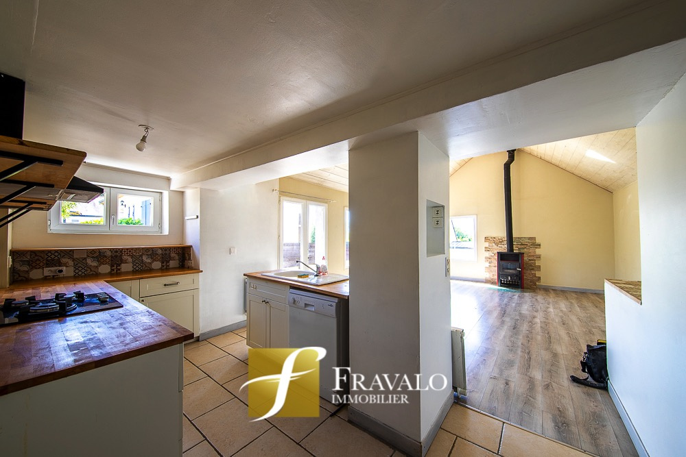 EXCLUSIVITE - Située dans le bourg de Baden, à proximité des commodités, lumineuse maison d'environ 120 m2 implantée sur un terrain de 1200 m2. Elle se compose au rez-de-chaussée d'une entrée, d'un salon-séjour avec insert, d'une cuisine éq...
