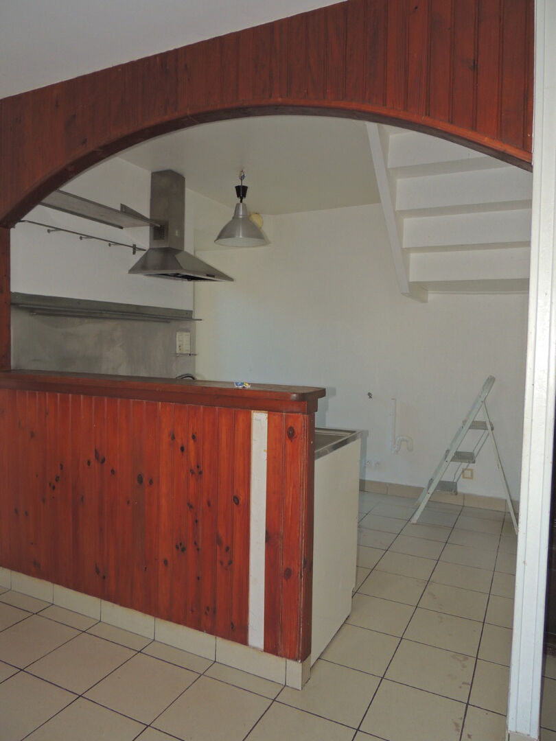 Au rez-de-chaussée : une entrée sur salon-séjour-cuisine avec conduit de cheminée, un wc.