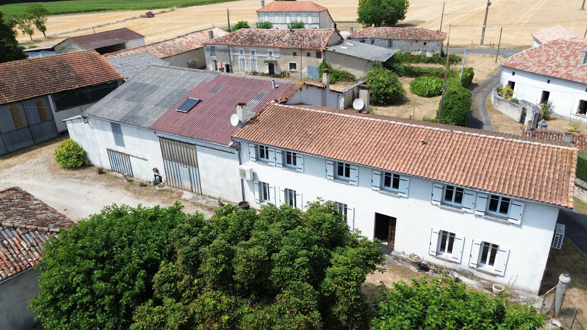 BRAN (17) - A 5 km de BAIGNES (16) et 7 km de CHEVANCEAUX (17) - Bel ensemble immobilier dans un petit bourg édifié sur un terrain arboré et en partie clos de 4590 m2. Grande longère charentaise en cours de rénovation et maison de construction plus récente hab...