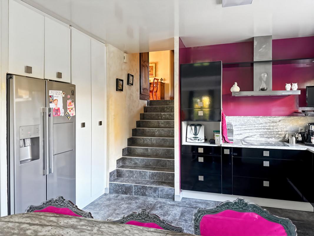 Maison style longère alliant le moderne à l'ancien d'une superficie de 179m2 habitables offrant au rez-de-chaussée entrée, cuisine aménagée et équipée ouverte sur le salon-séjour, wc...