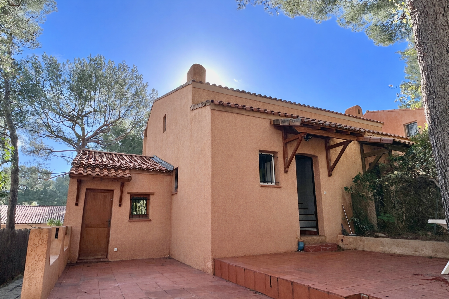BANDOL - Située dans le secteur recherché des Calanques, agréable villa club de type 3 pièces bénéficiant d'un jardinet clos et arboré, de terrasses et d'une exposition plein sud. Elle se compose au rez-de-chaussée d'une entrée avec dégagement e...