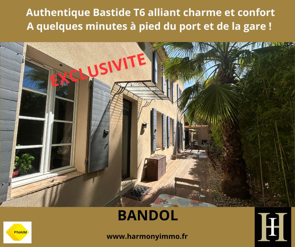 À seulement quelques minutes à pied du port de Bandol, de la gare et de la plage, découvrez cette superbe bastide T6 de 1850 entièrement rénovée, d'une superficie habitable de 164m2, alliant charme provençal et confort contemporain.Dès l...
