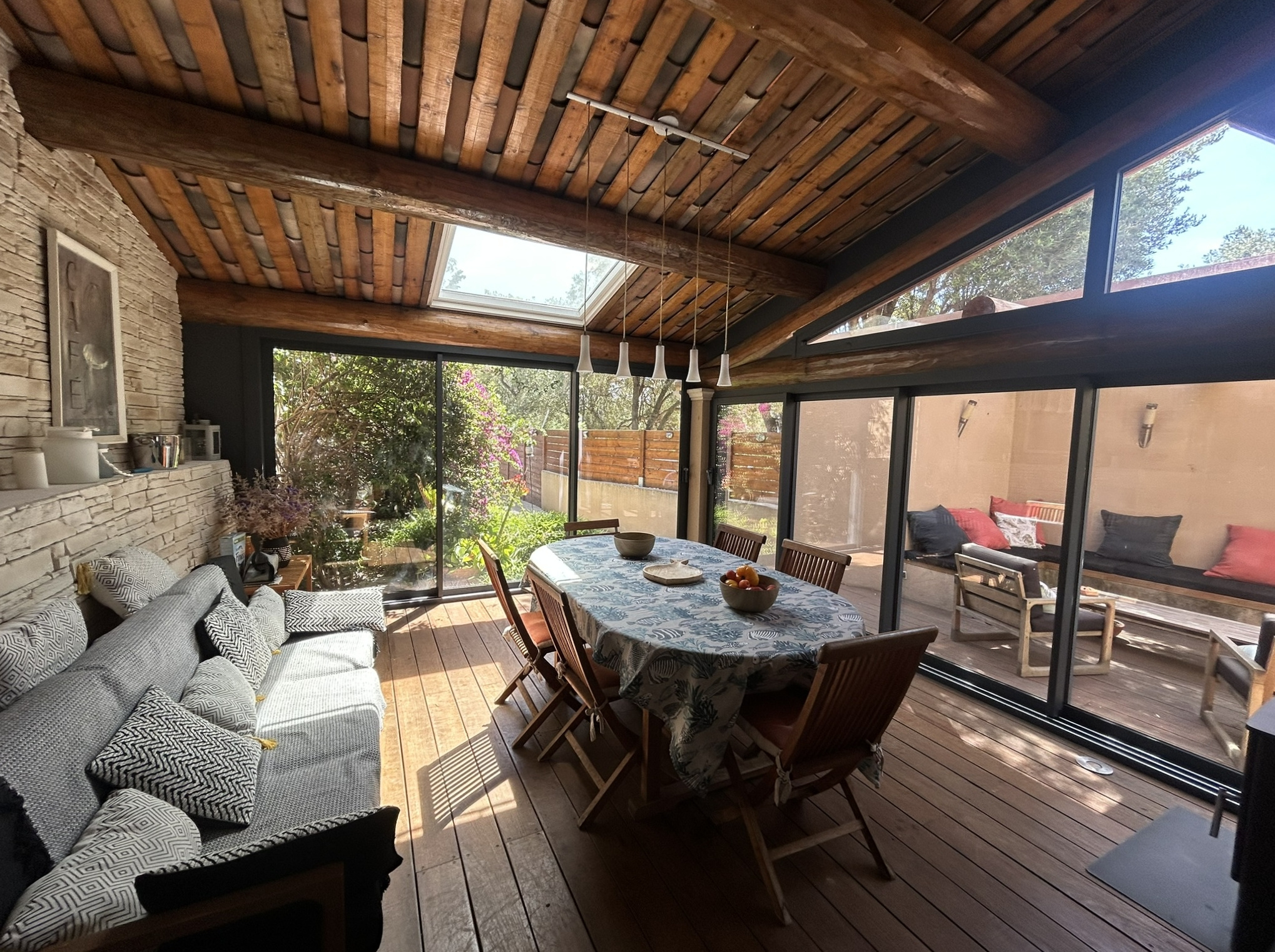 Sur un terrain de 446 m2 exposé plein sud cette maison de caractére offre un cadre de vie paisible et ensoleillé. Possibilité de créer une piscine, actuellement un jacuzzi complète agréablement l'ensemble.Elle se compose d'une cuisine indépendante av...