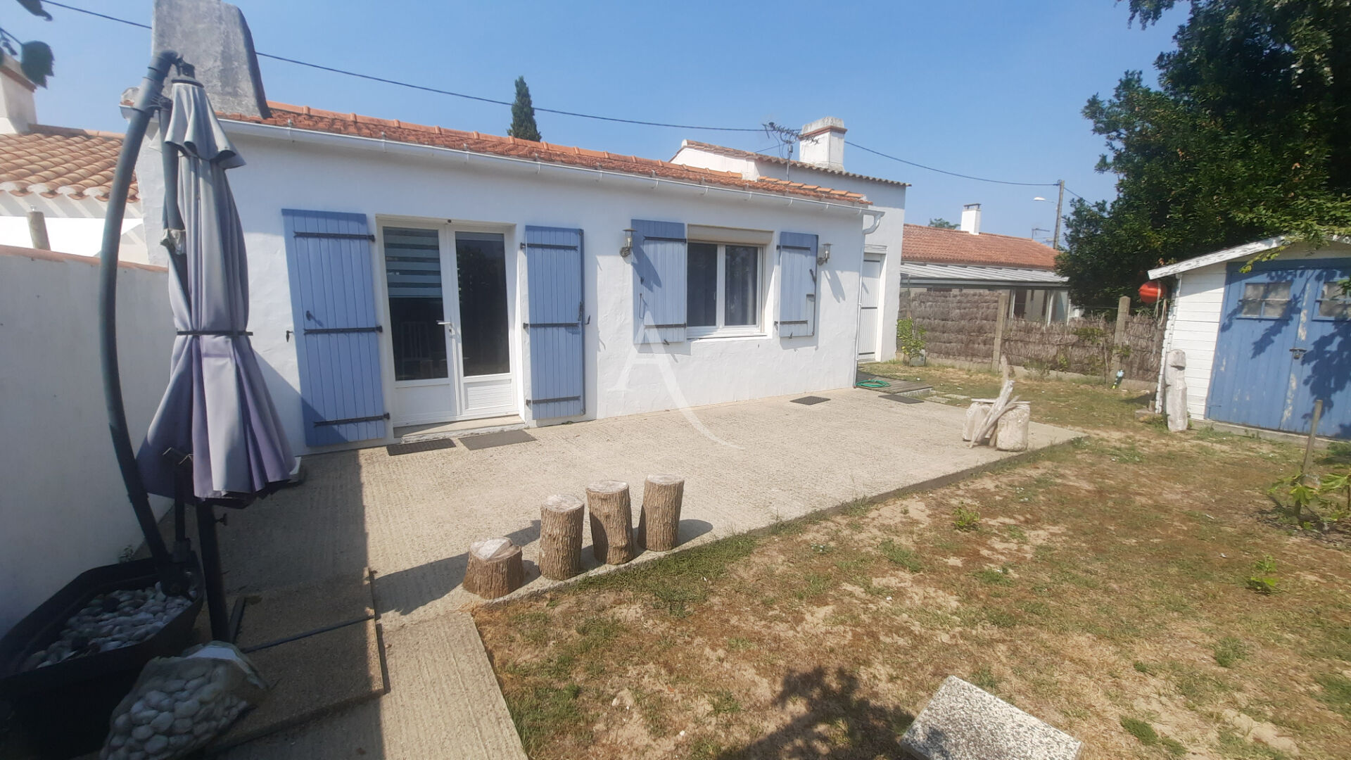 Dans le centre à 500 m de la plage maison de plain pied sur une parcelle de plus 1 000 m². Habitable à l'année.