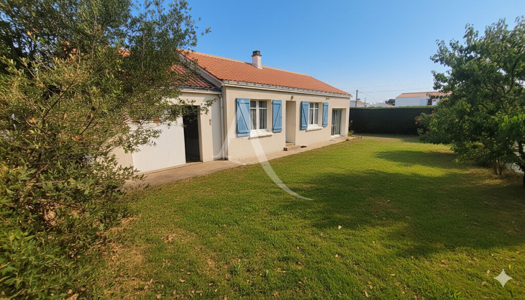BARBÂTRE - En exclusivité, maison située à 800 m de la plage et 3 kms du centre bourg. De plain-pied sur un terrain arboré de 407 m2 avec plantes et fruitiers, elle se compose d'une entrée, d'un beau salon/séjour/cheminée-insert de 32 m2 environ donn...