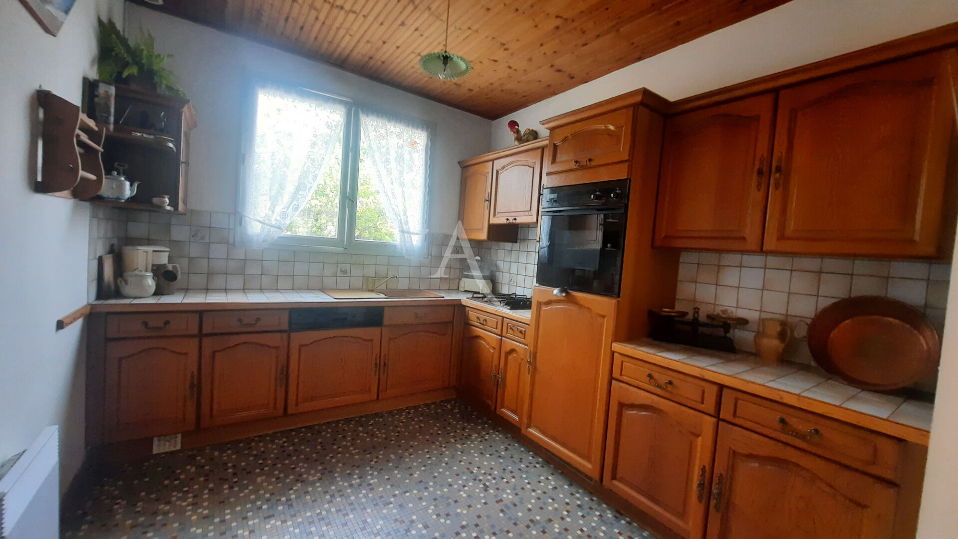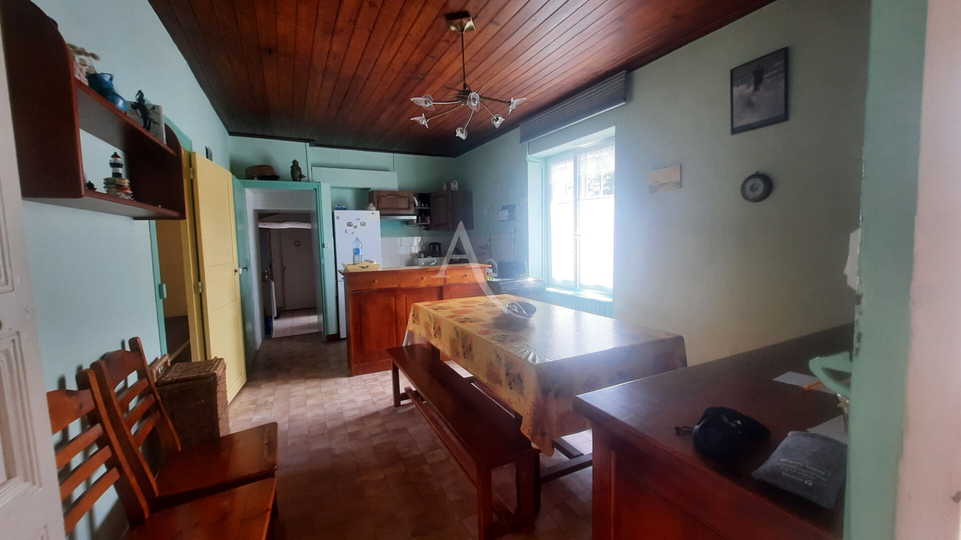 Maison atypique à remettre au goût du jour avec de beaux espaces.