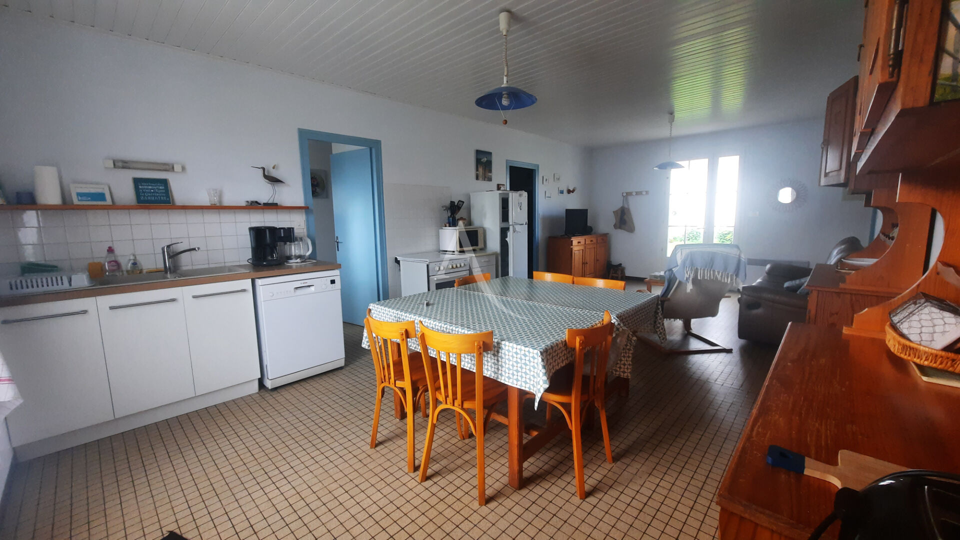 Dans le centre et à moins de 15 minutes à pied de la plage, maison de plain pied avec garage.