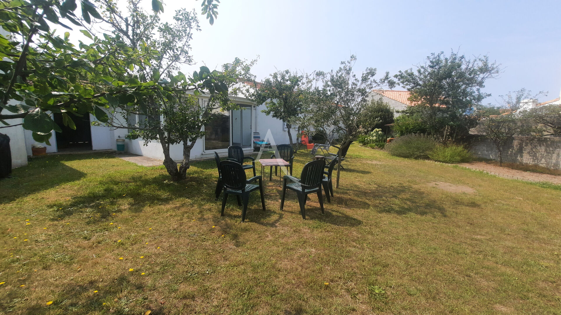 Dans le centre bourg et à 550 m de la plage de l'océan maison de plain pied avec magnifique jardin.