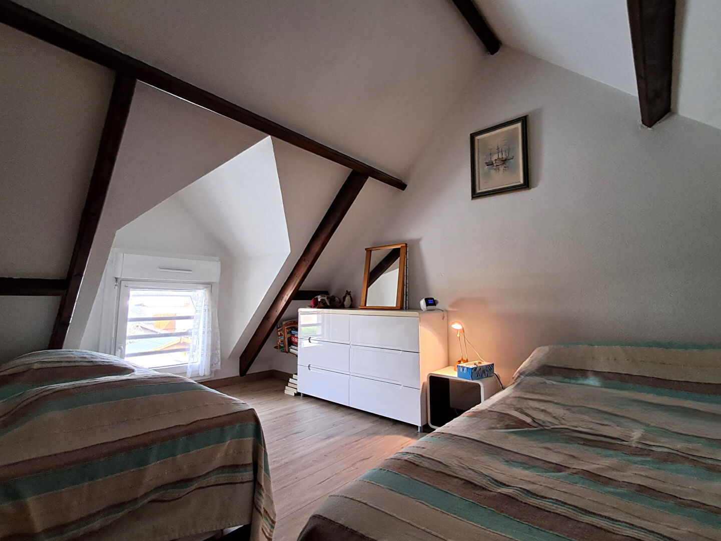 Proche de toutes commodités (gare, commerces, plage) Maison ancienne en bon état composée d'une entrée donnant sur séjour, cuisine américaine équipée, 4 chambres, puis un jardin bien exposé.