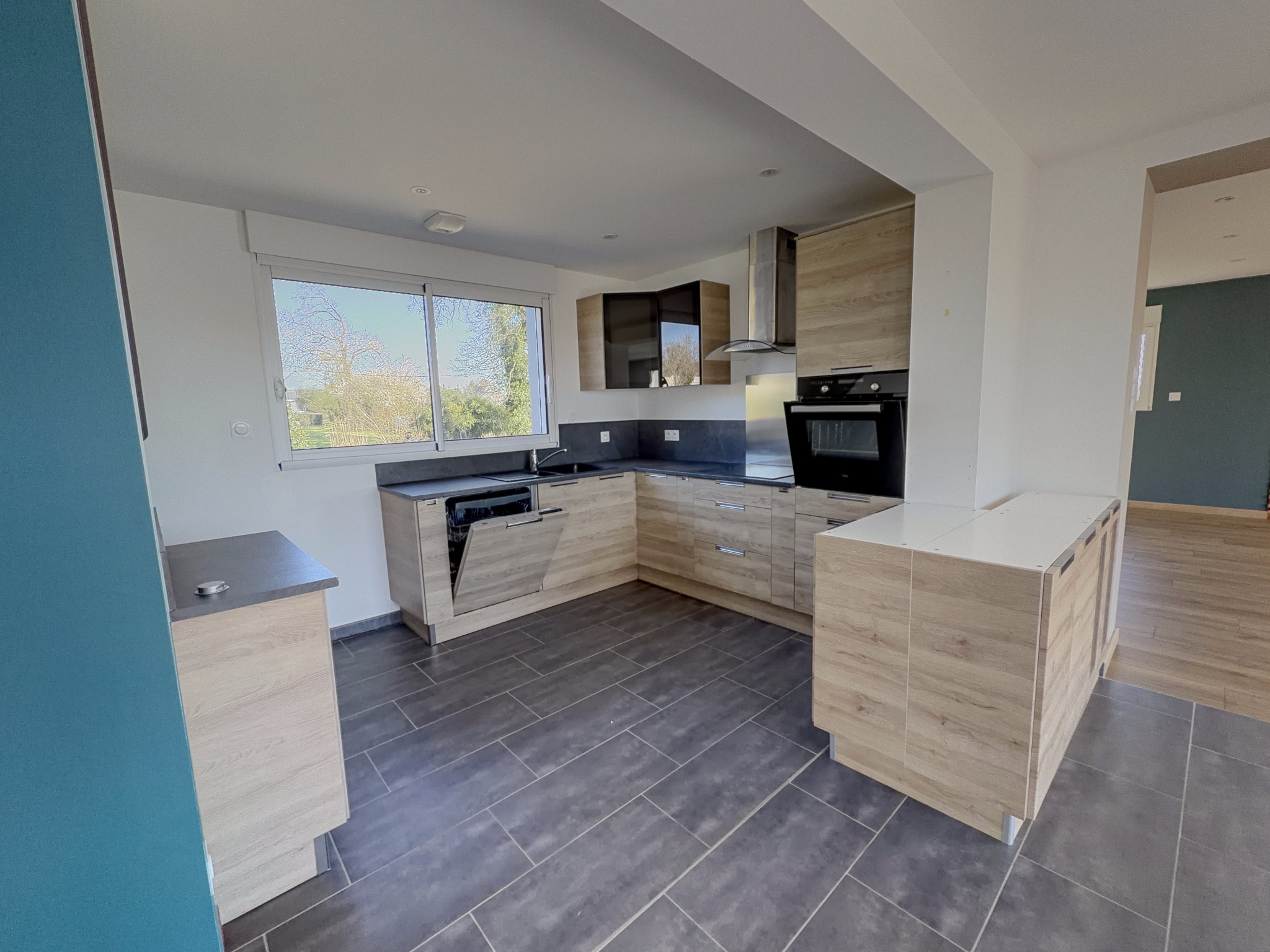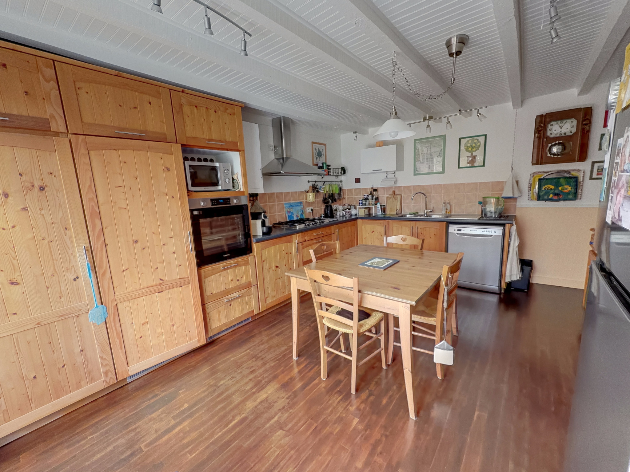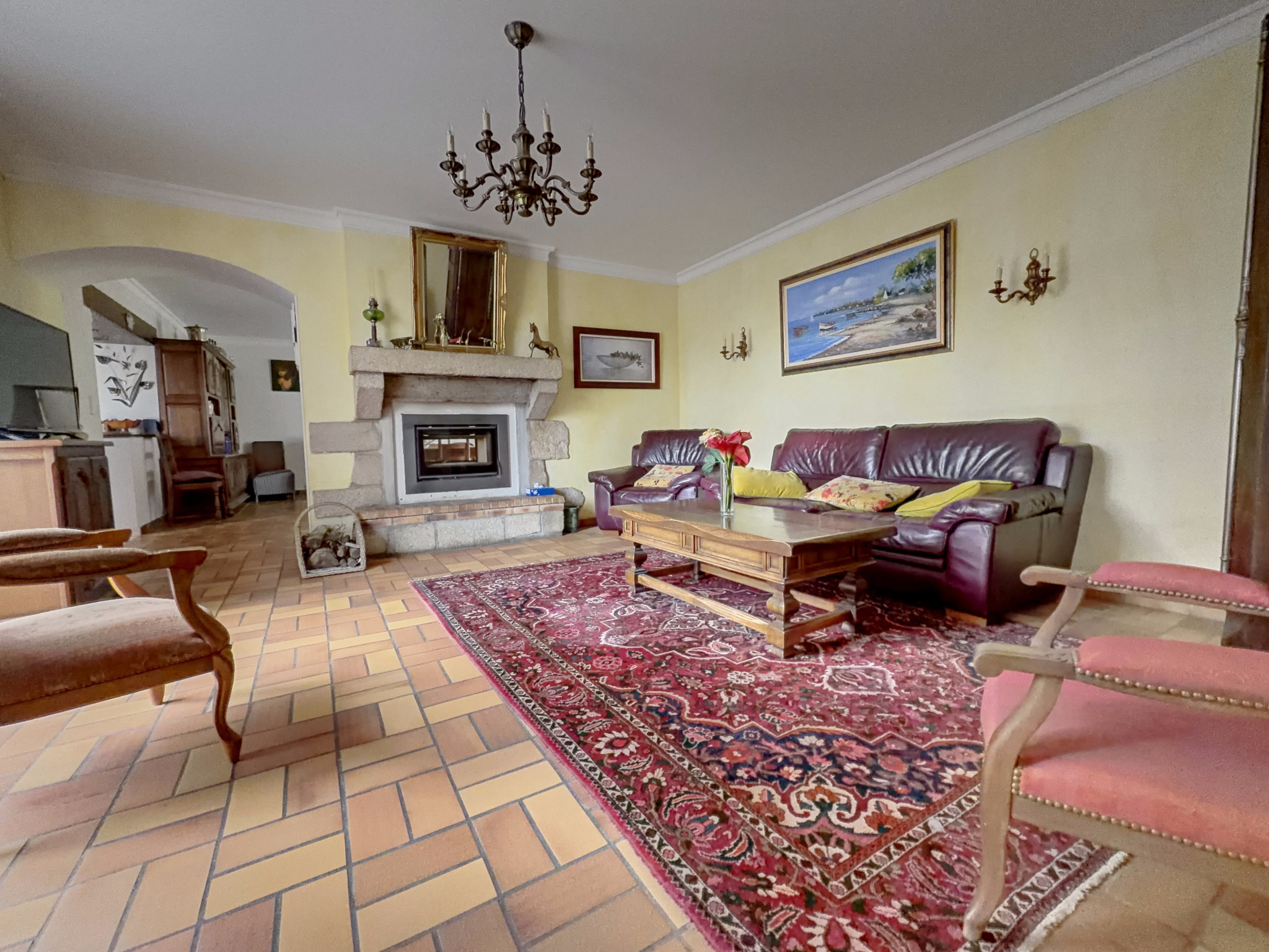 Entrée spacieuse Pièce de vie lumineuse avec salon et salle à manger, équipée d'un insert à bos, créant une ambiance chaleureuse. Cuisine aménagée et équipée, offrant u...