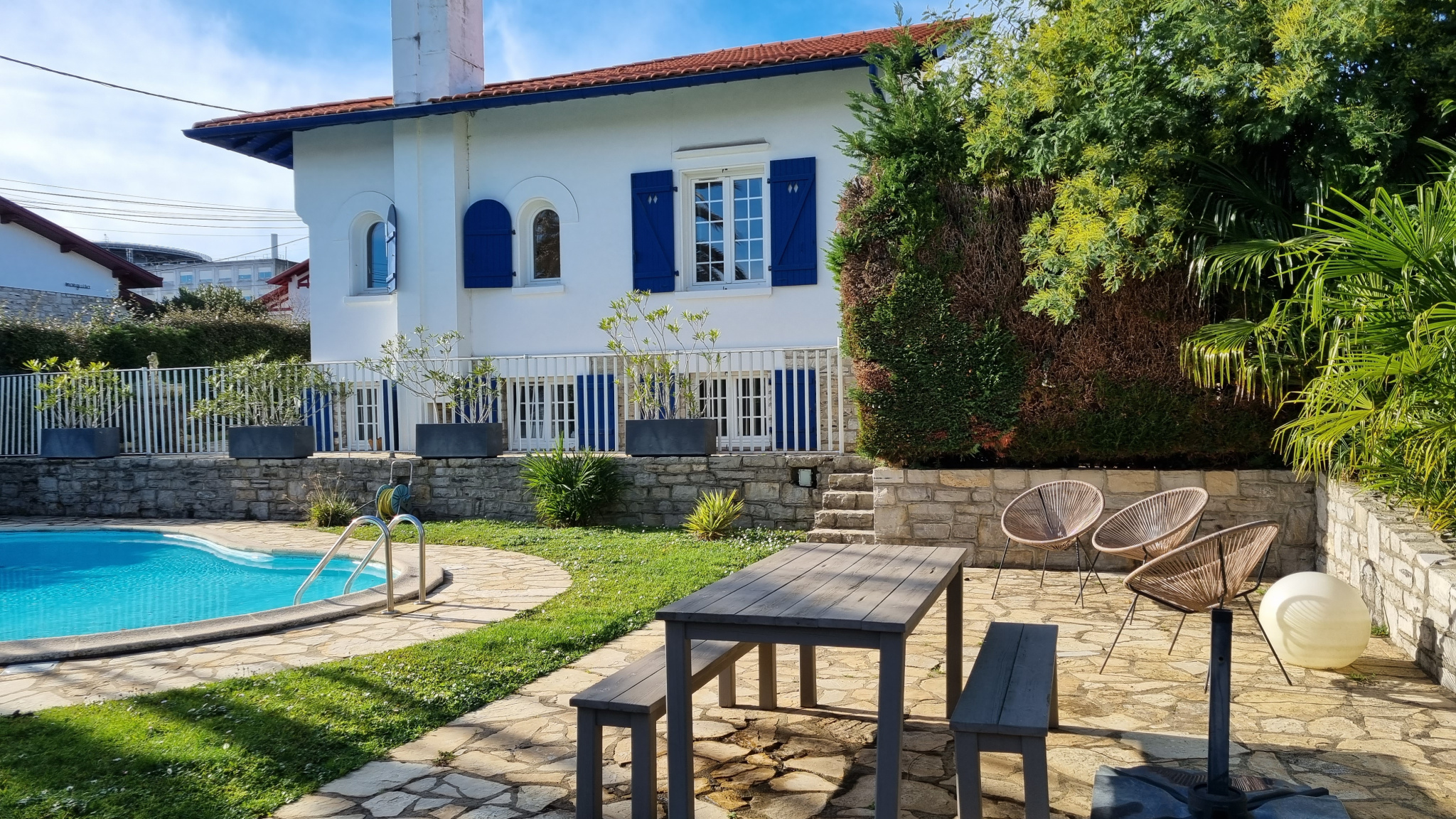 EXCLUSIVITE - QUARTIER des ARENES - Dans un des quartier les plus recherchés de Bayonne, une belle maison néo basque avec le charme de l'ancien : parquet, sols en mosaiques, cheminée, belle hauteur sous plafond... Sur un terrain de 650m2 arboré et piscina...