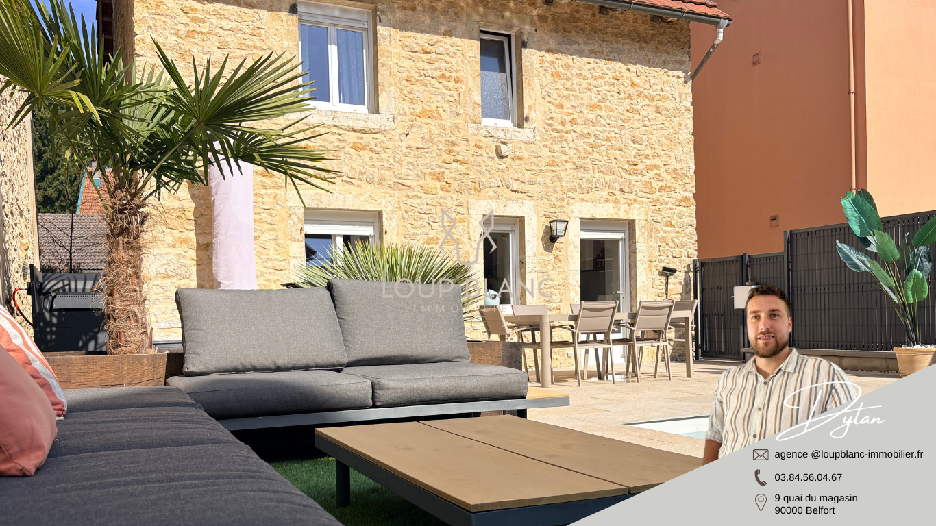 LOUP BLANC Immobilier BELFORT vous propose à la vente cette maison entièrement rénovée, située sur la commune de Beaucourt, à proximité de la frontière suisse.