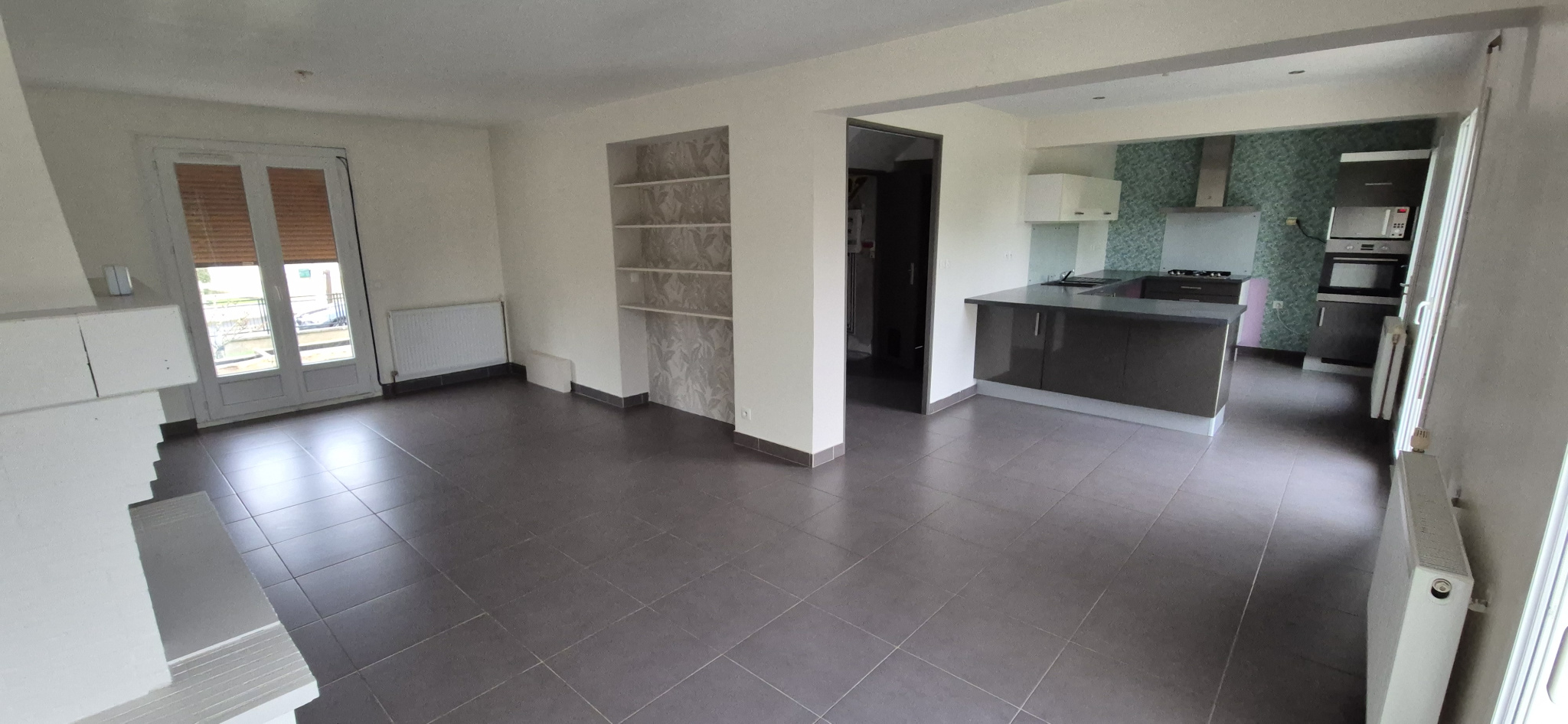 Charmant pavillon de plain-pied offrant une belle pièce de vie lumineuse avec cuisine ouverte, aménagée et équipée.