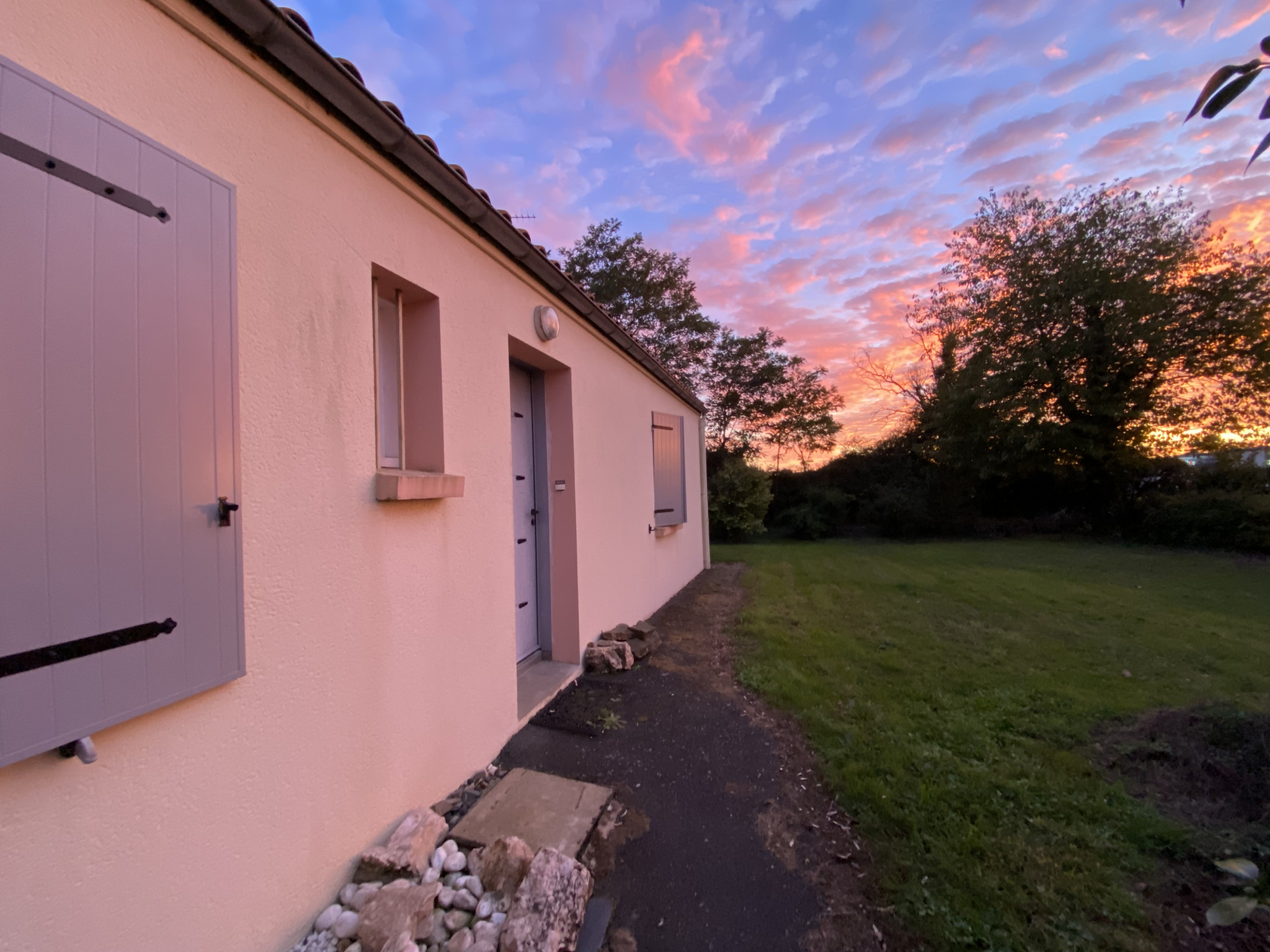 Maison à VILLEDIEU-LA-BLOUERE Maison d'habitation de type 4 de plain-pied comprenant : entrée, pièce de vie de 50m2 avec cuisine ouverte aménagée et équipée, 2 chambres (3 possibles) dont une avec dressing, salle de bains, wc. Garage avec grenier et coin...