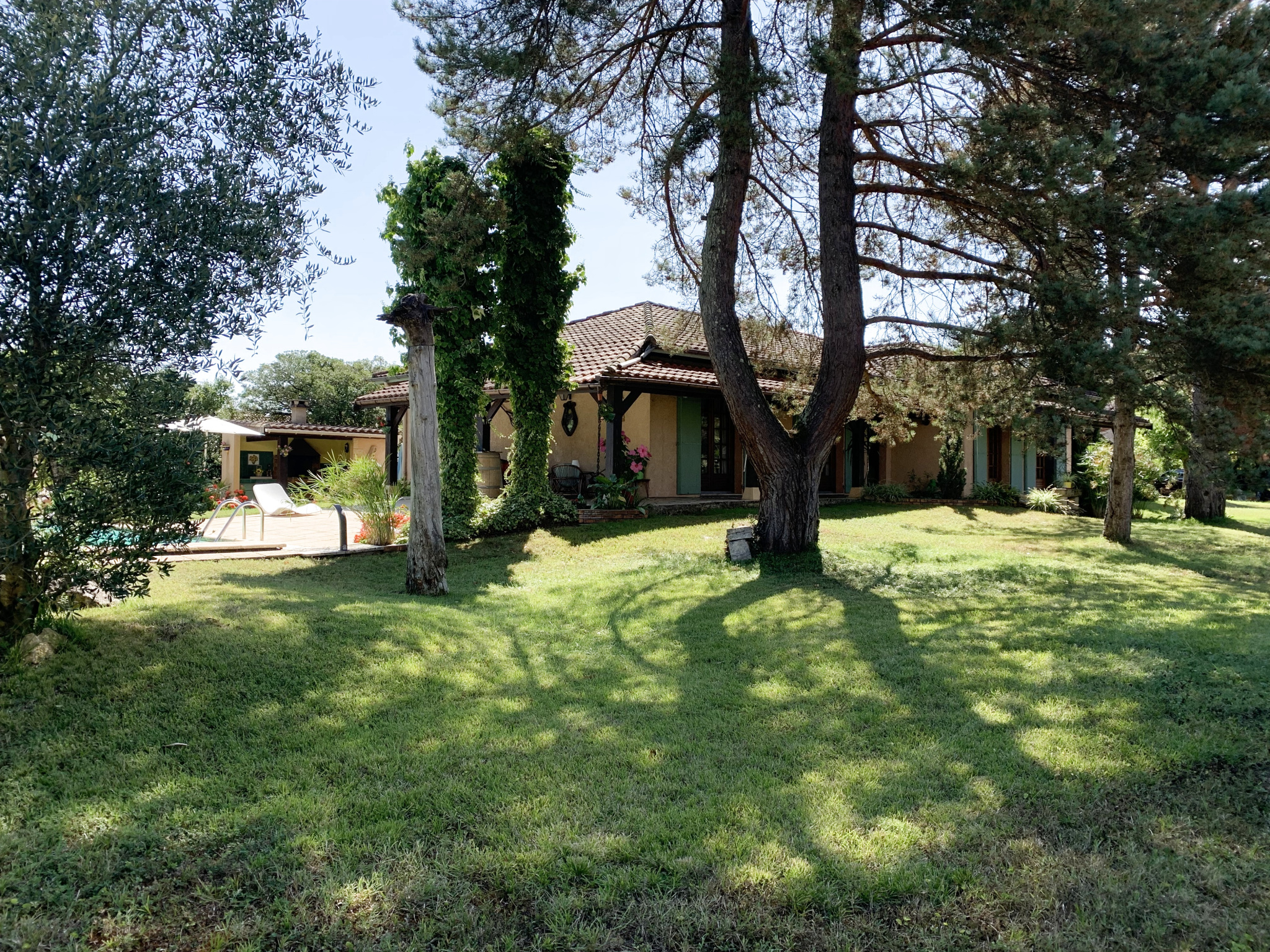 Le jardin paysagé de 2500m2 avec sa piscine et sa grande terrasse à l'abri des reg...