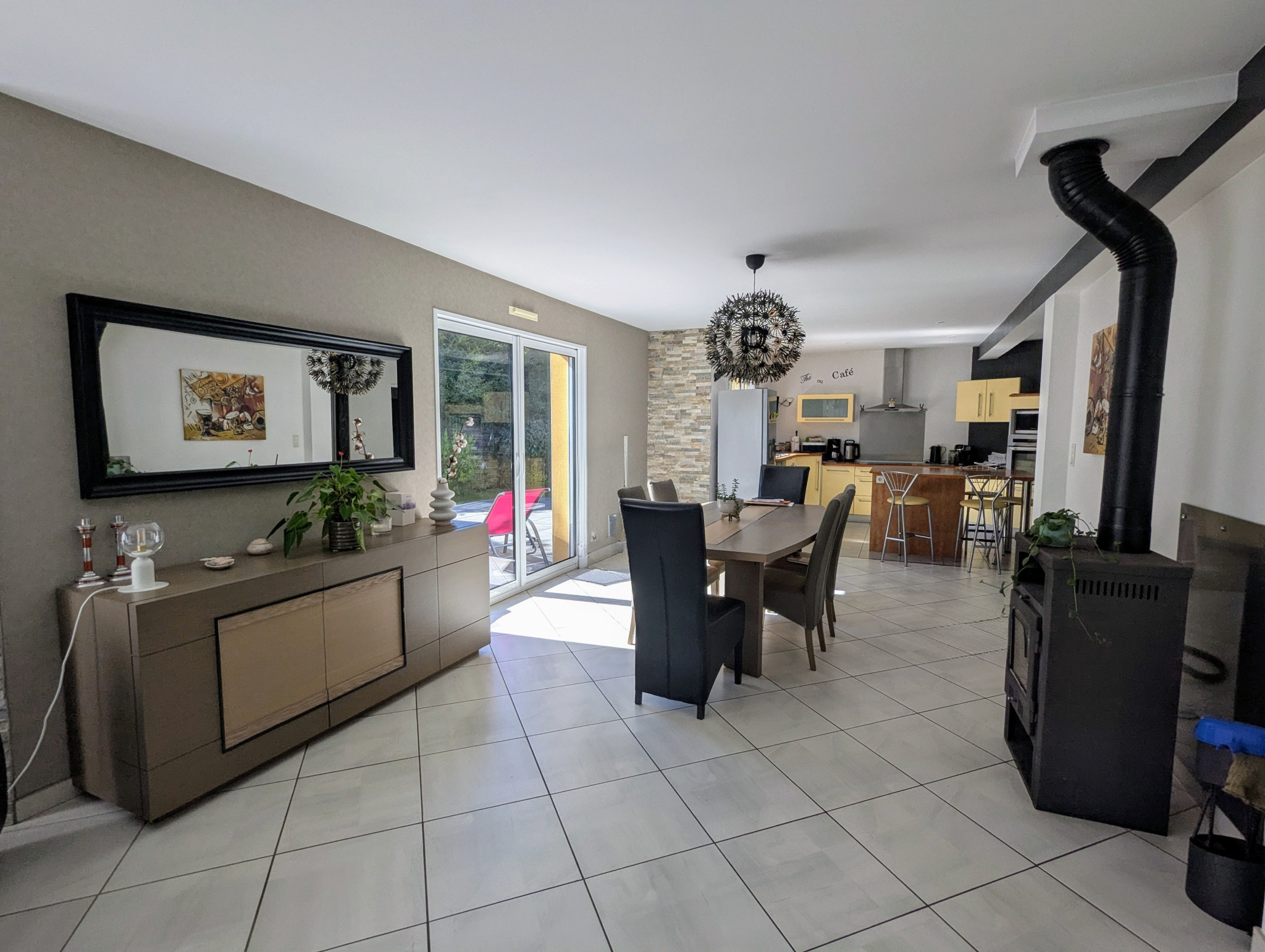 Située dans un environnement calme et verdoyant, découvrez cette agréable maison de plain-pied d'environ 111m2, offrant confort, luminosité et fonctionnalité.
