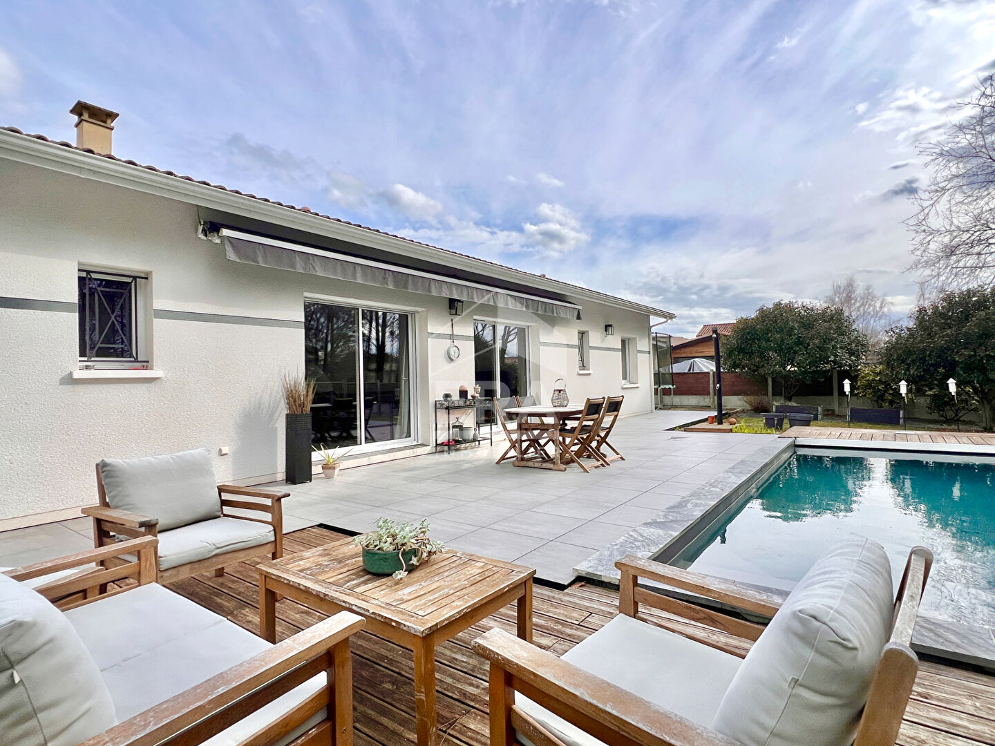 Dans un quartier recherché de Belin-Beliet, au calme, maison contemporaine 7 pièces/4 chambres, de plain pied édifiée en 2002 (et remise aux goût du jour à partir de 2019) d'environ 127m2 sur un joli terrain de près de 2000m² comprenant garage attenant à ...