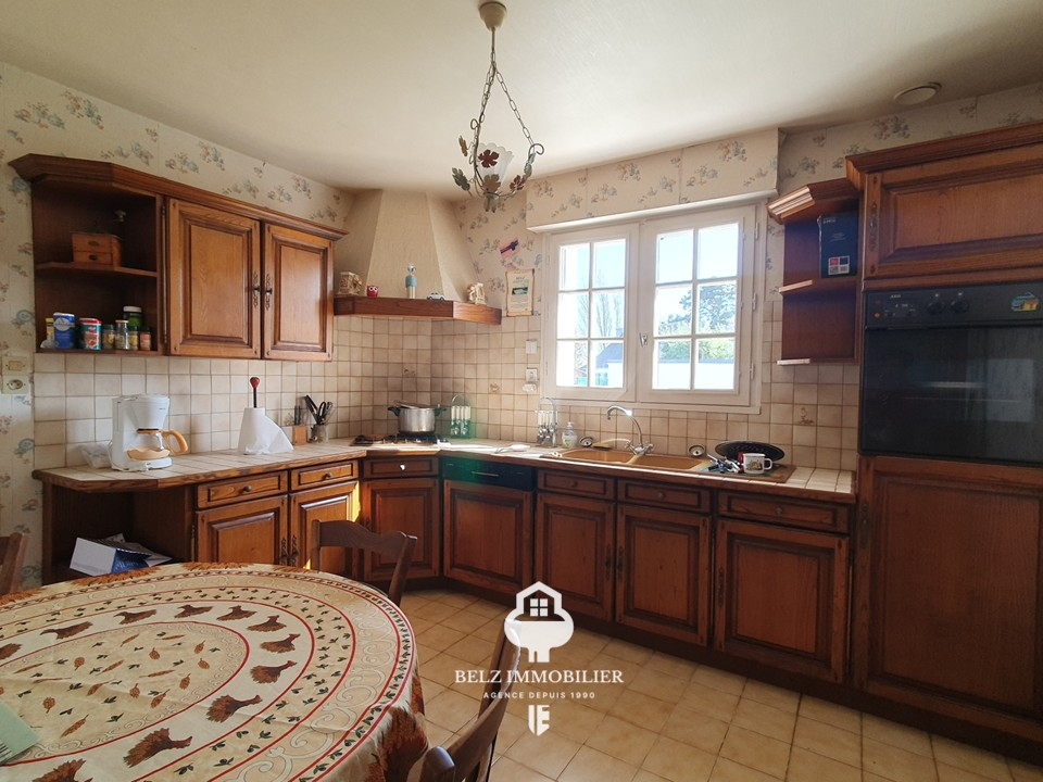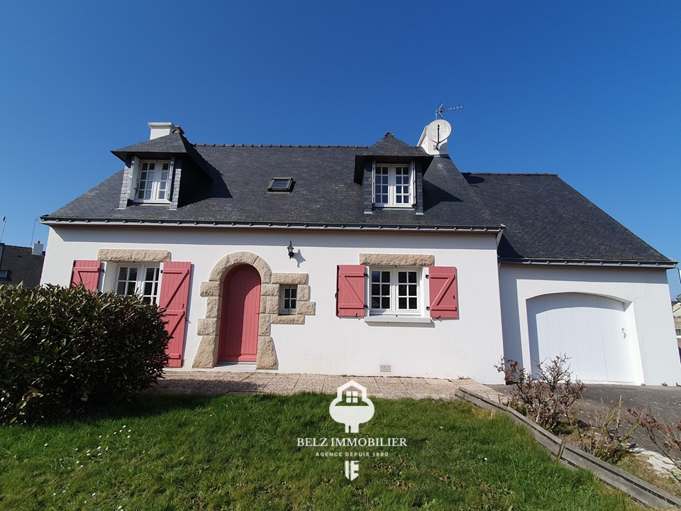 Située à Belz dans un hameau calme et recherché , à 5 kms des plages et 2kms du bourg découvrez cette belle maison de plain-pied offrant environ 90m2 habitables sur un terrain clos et arboré de 766m2.