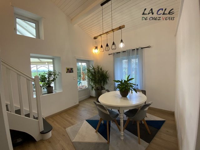 Cette magnifique maison ancienne rénovée se compose au rez-de-chaussée d'une entrée, un spacieux séjour avec une cuisine équipée et un poêle à granulés, une salle à manger, une véranda, un cellier et des toilettes. A l'étage, un palier, 2 chambres, u...