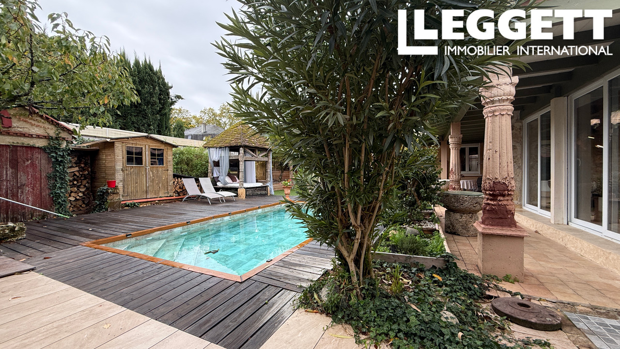 A39238HRC24 - Cette propriété rénovée localisé entre Lalinde et Bergerac offre 157 m² habitables comprenant 4 chambres, 3 salles de bains, une terrasse exposée sud et une piscine privée entourée de bois. Implantée sur plus de 6 000 m² de terrain avec garages e...