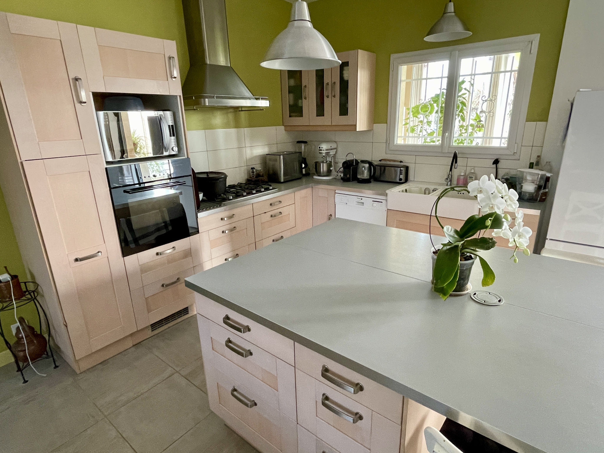 Maison entièrement rénovée (intérieur 2024, extérieur 2023), de 130 m2 habitables, construite en 1997, offrant une belle pièce de vie de 47 m2 exposée plein sud, 3 chambres, cuisine indépendante, salle de bain, WC, buanderie et cellier.