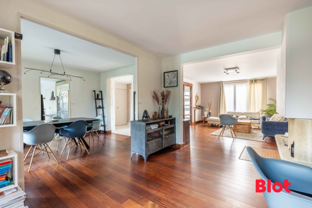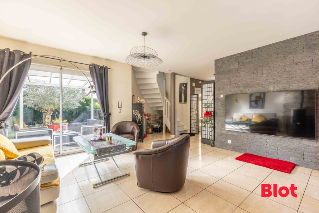 Cette maison familiale située en impasse, sur le chemin de la coulée verte , sur le chemin de l'école, résolument tournée vers l'extérieur, vers son jardin, sa véranda et sa terrasse, vous permettra d'a...