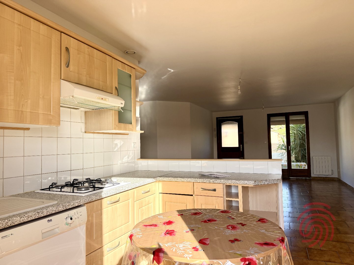 Très agréable villa des années 90 avec séjour salon cheminée, cuisine aménagée, 3 chambres, salle d'eau, climatisation, garage + préau.