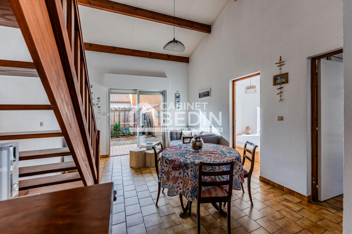 Exclusivité CABINET BEDIN - BISCARROSSE PLAGE. Située dans une petite copropriété de 10 lots, au calme et à proximité immédiate de la plage, cette maison est idéale pour un pied-à-terre ou un investissement locatif. Elle se compose d?un séjour lumineux avec gr...