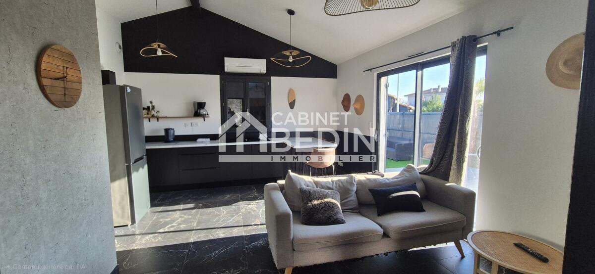 biscarrosse. Découvrez cette superbe maison quasi neuve offrant 3 chambres confortables et un bureau idéal pour le télétravail. Son vaste espace de vie ouvert de plus de 40 m² réunit salon, cuisine et séjour dans une ambiance chaleureuse et lumineuse. Vous pro...