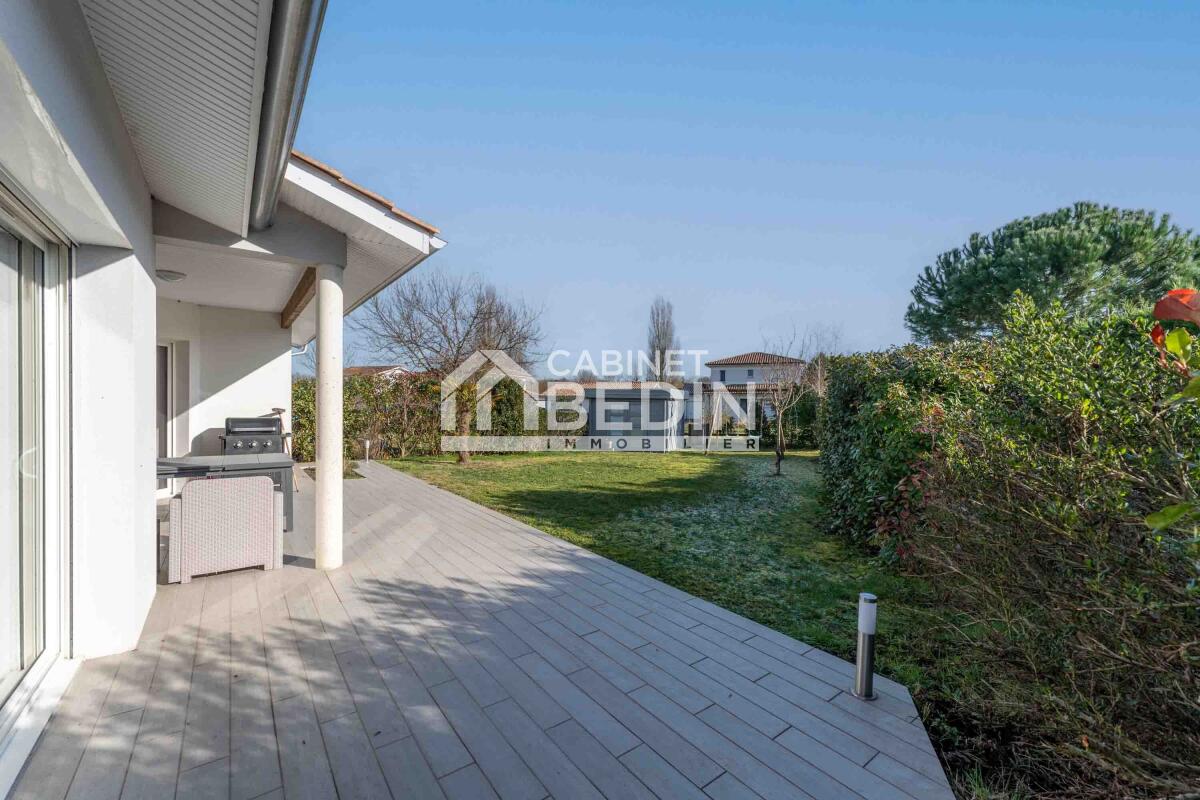 CONTEMPORAINE 140m2 PLAIN PIED BLANQUEFORT. Situé au calme, cette maison de plain pied récente construite en 2013, offre de belles prestations. Parfaitement organisée autour d'une pièce de vie avec cuisine US de plus de 50m2 largement ouverte sur le jardi...