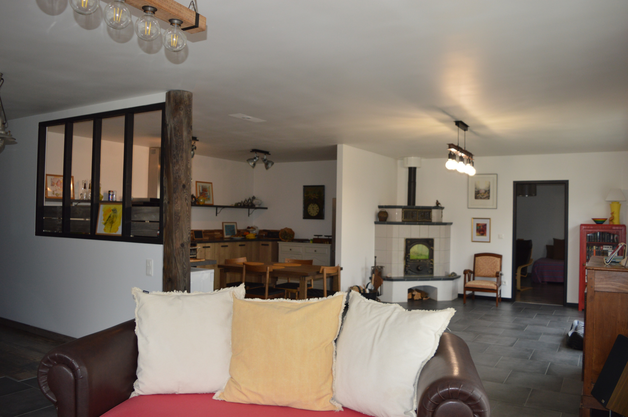 Composée d'une cuisine ouverte sur salon, ...