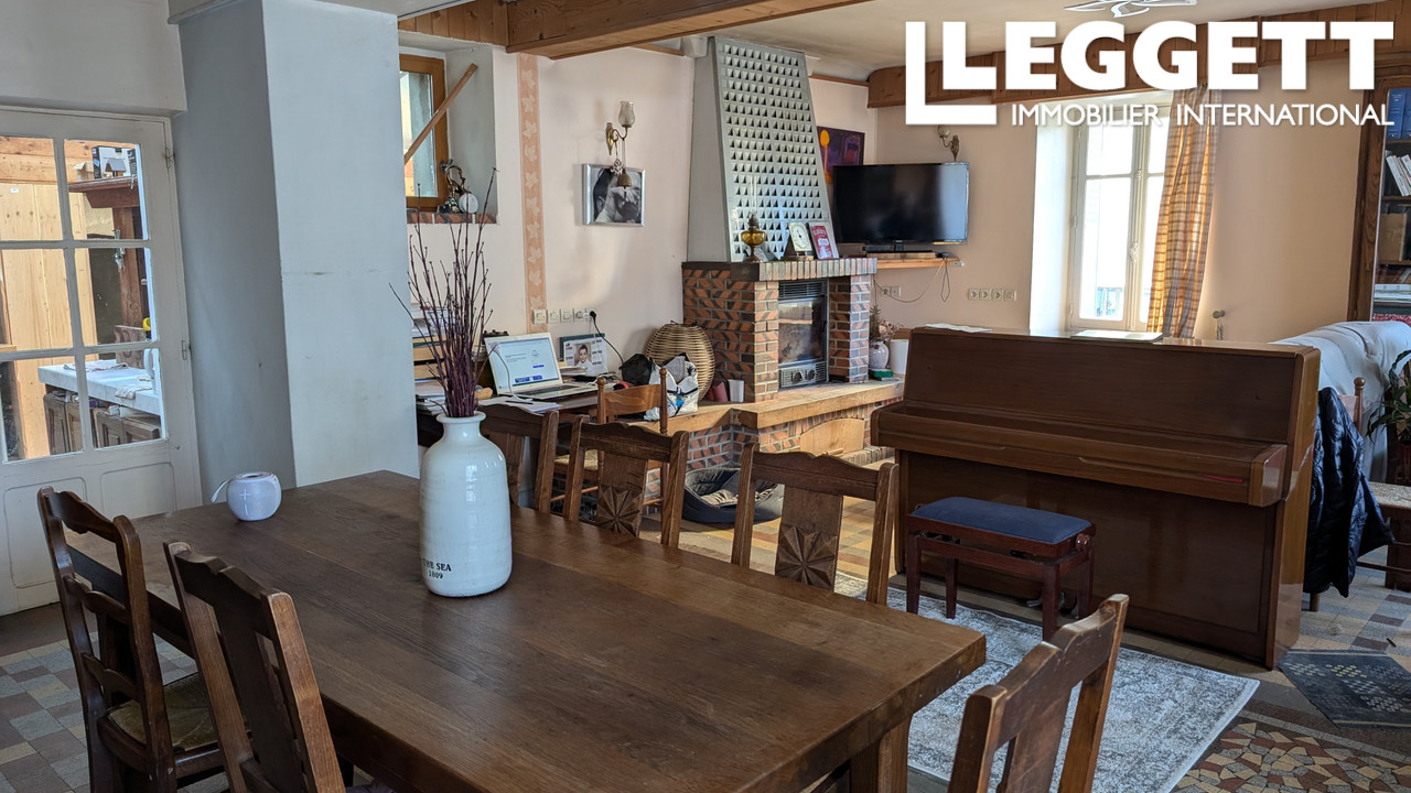A proximité du bourg.proche des chemins de randonnée. Maison ancienne d'une surface d'environ 125 m² , elle se sompose d'un séjour avec cheminée insert d'une surface d'environ 21 m², cuisine aménagée ouverte sur le salon, salle à mange...