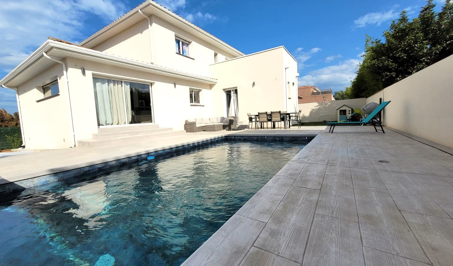 À seulement 5 minutes de Perpignan et 12 minutes des plages, découvrez cette magnifique villa contemporaine construite en 2022, nichée dans un quartier calme et privilégié.