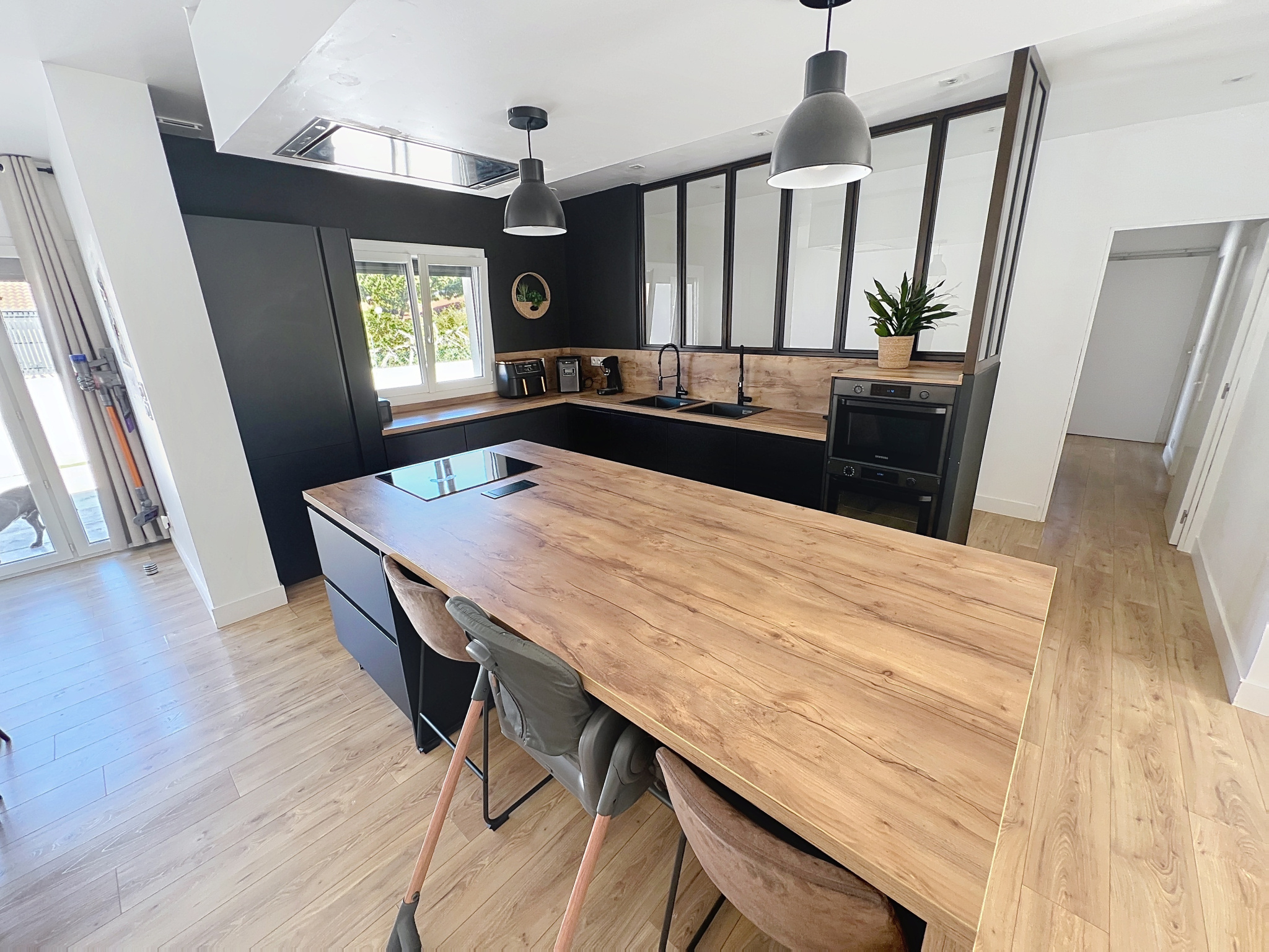 Au rez-de-chaussée on retrouve une belle pièce à vivre de 48 m² agencé d'un salon et d'une cuisine IXINA équipée et aménagée avec bel îlot central permettant l'...