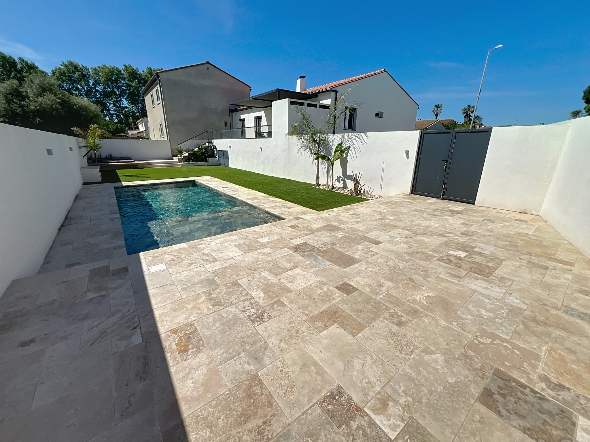 SECTEUR RESIDENTIEL -VILLA 3 FACES DE PLAIN PIED 88.27 M2 HBTS SUR 351 M2 DE TERRAIN - NORMES RE 2020 - PISCINE MACONNEE 6X3 - DOMOTIQUE - CLIMATISATION MITSUBISHI GAIGNABLE -