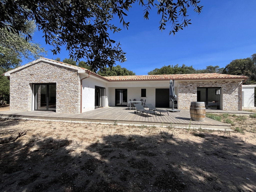 À cinq minutes des commodités et du port de Bonifacio, au coeur de la campagne bonifacienne, secteur Padurella, découvrez cette villa récente et lumineuse d'environ 130 m2 édifiée de plain-pied sur un terrain plat et entièrement clos de 1 276 m2. Elle pro...