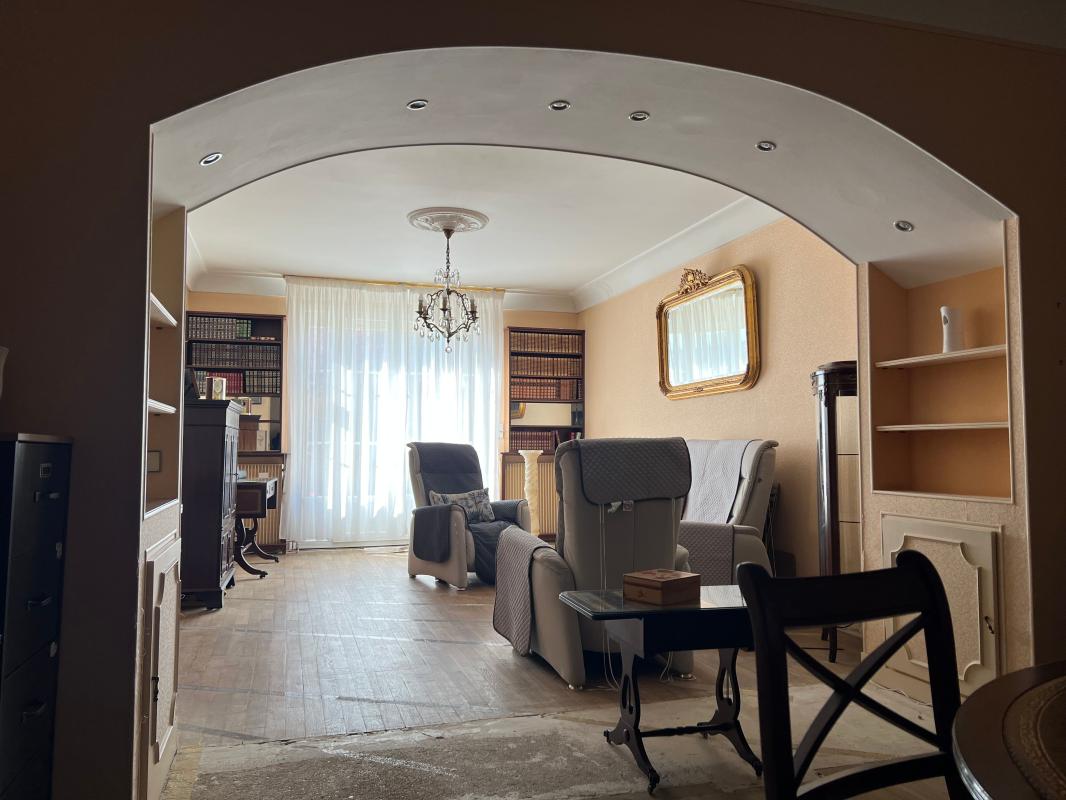 Maison traditionnelle sur sous-sol avec entrée, placards, garage double, chaufferie, buanderie, atelier. Au rez-de-chaussée surélevé entrée, placards, séjour, salon, terrasse, cuisine équipée, chambre, salle de bains avec WC. Au premier étage petit palier dess...