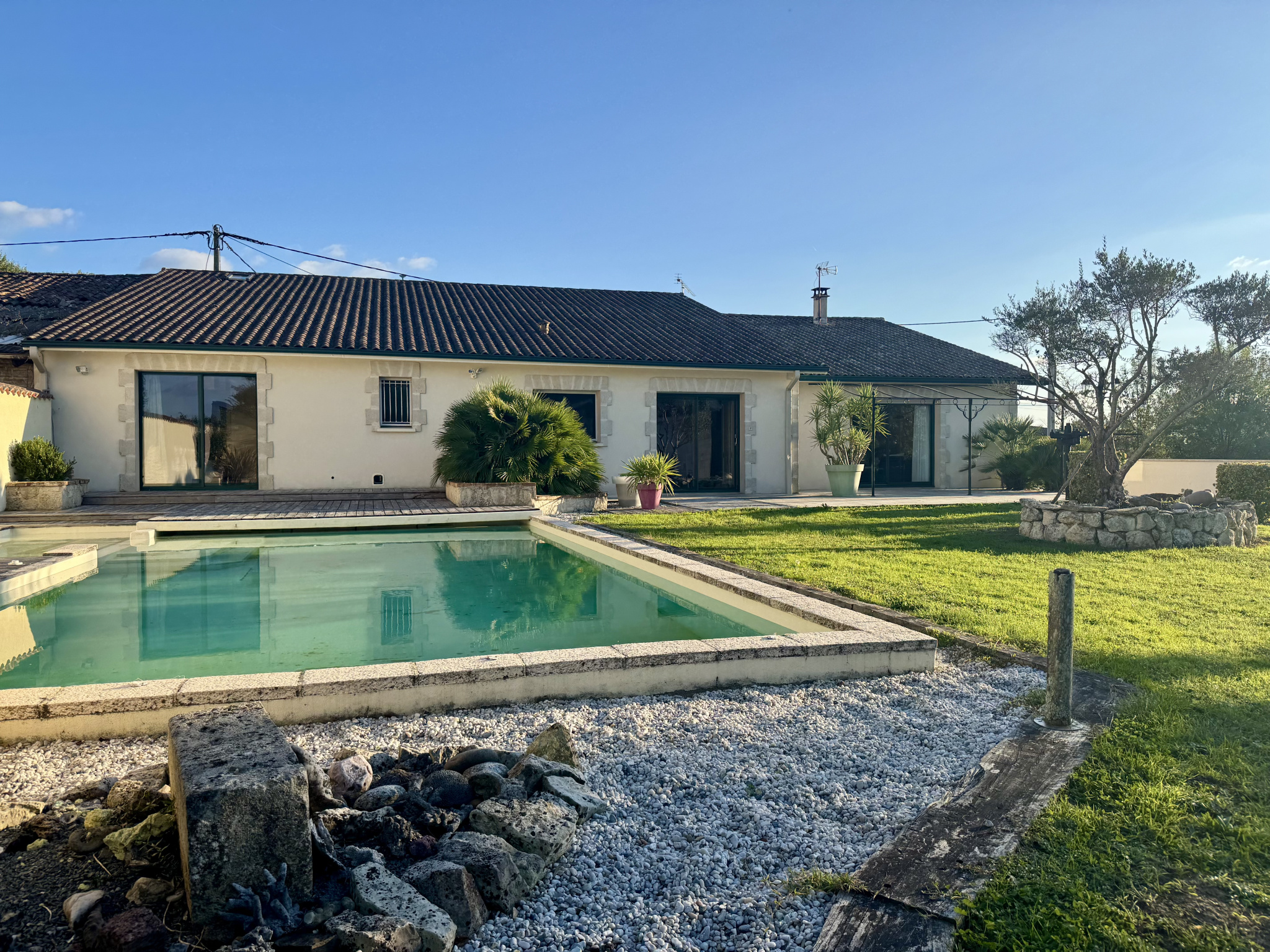 À quelques minutes des commodités, dans un environnement verdoyant et préservé de Bonzac, cette vaste bâtisse en pierre déploie toute sa prestance au coeur d'un terrain de plus de 5 000 m2. Ici, l'espace, la lumière et le confort moderne s'uniss...