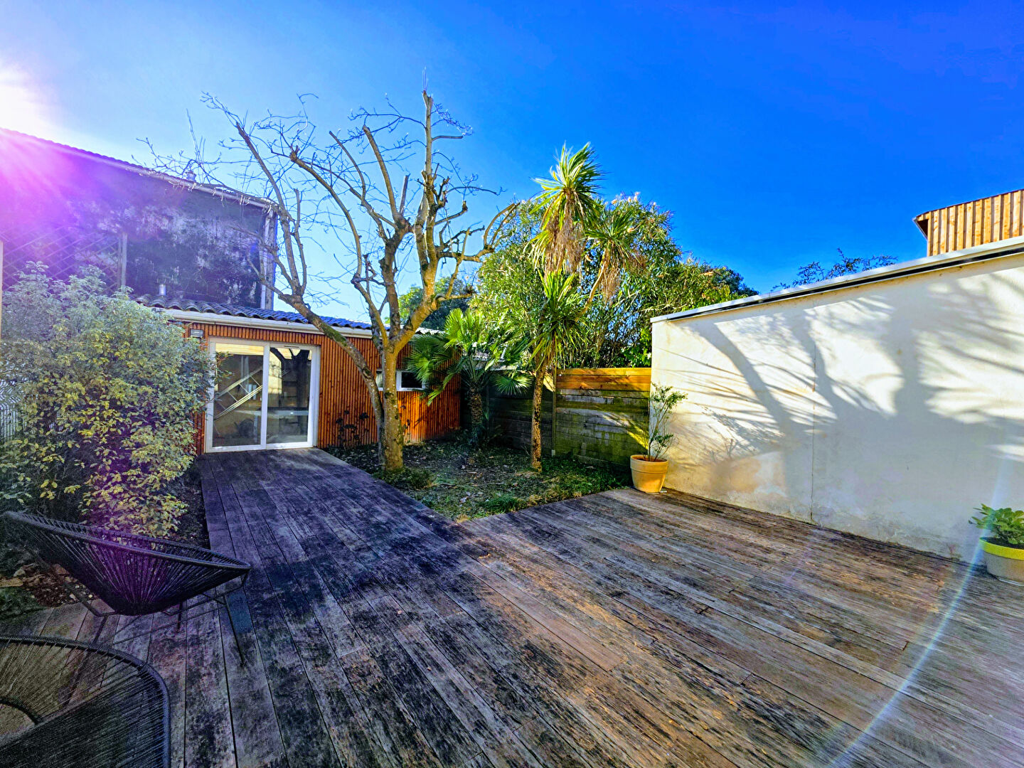 Echoppe atypique rénovée par architecte avec climatisation réversible et jardin d'environ 55 m² en très bon état.
