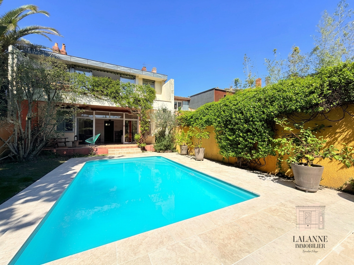 BORDEAUX - CAUDERAN PARC BORDELAIS. L'agence GRANGE-DELMAS vous propose à la vente dans une rue calme, cette très jolie maison en retrait de rue entièrement rénovée avec garage, jardin et piscine. D'une surface de référence de 175m² (196m² de surface...