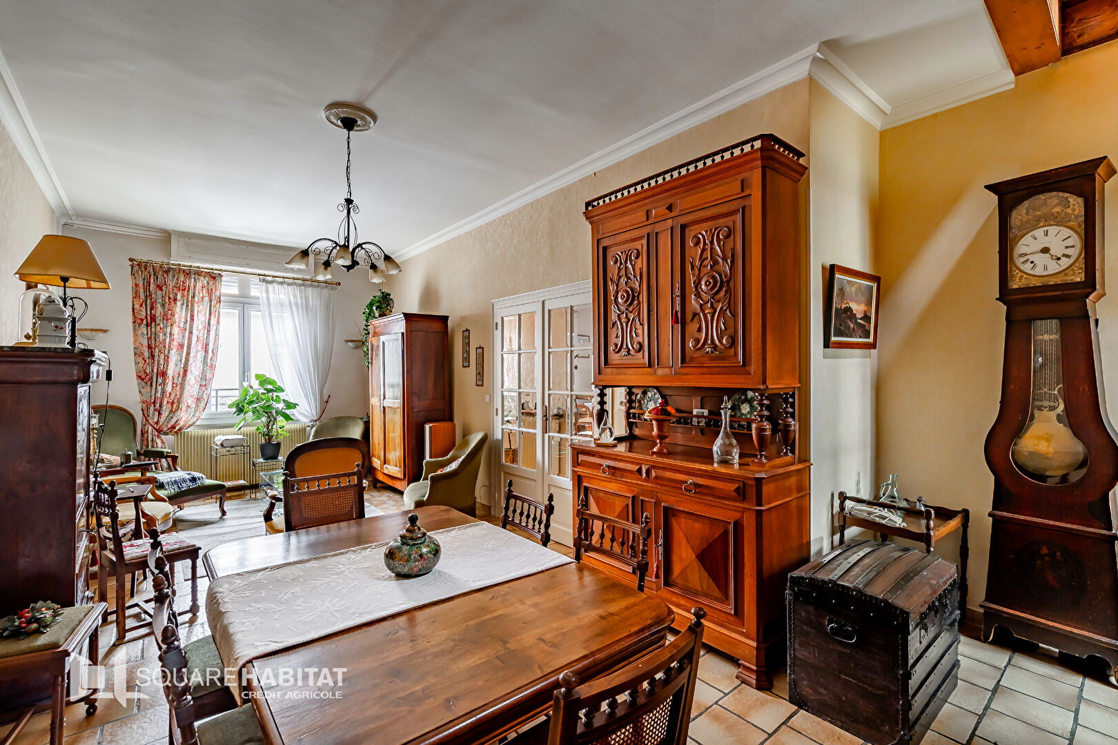 Au rez-de-chaussée, l'entrée avec des carreaux de ciment dessert un salon aux belles prestations anciennes ave...