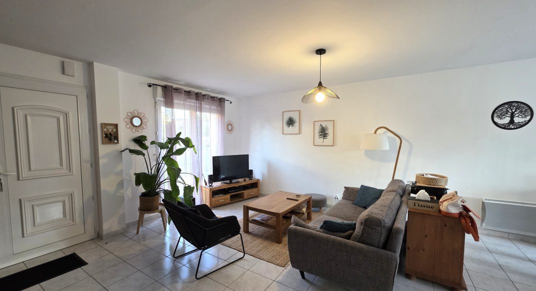 L'agence SDSimmo vous propose de découvrir cette maison construite en 2009 de 89m2 sur une parcelle d'environ 325m2, mitoyenne d'un côté par le garage. Cadre verdoyant, au calme, vis...