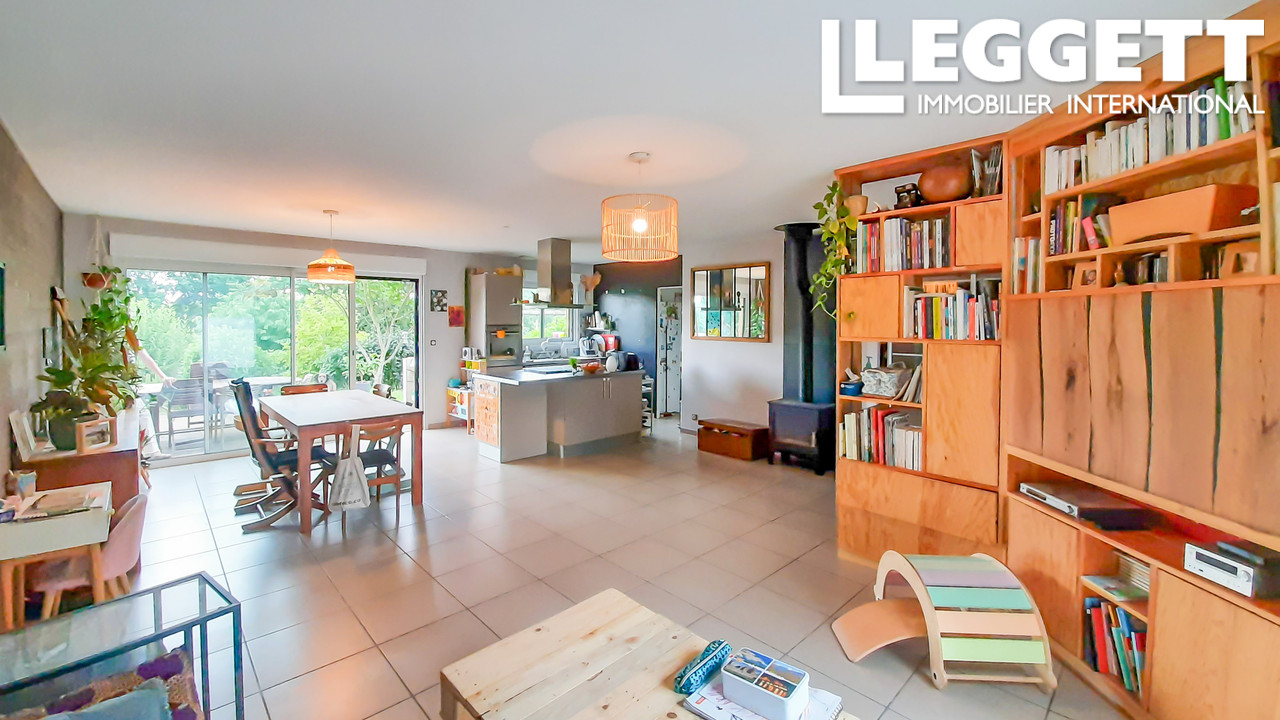 Cette maison comprend au rez-de-chaussée un salon d'environ 30 m2 avec une belle luminosité grâce à ses baies vitrées pour pr...