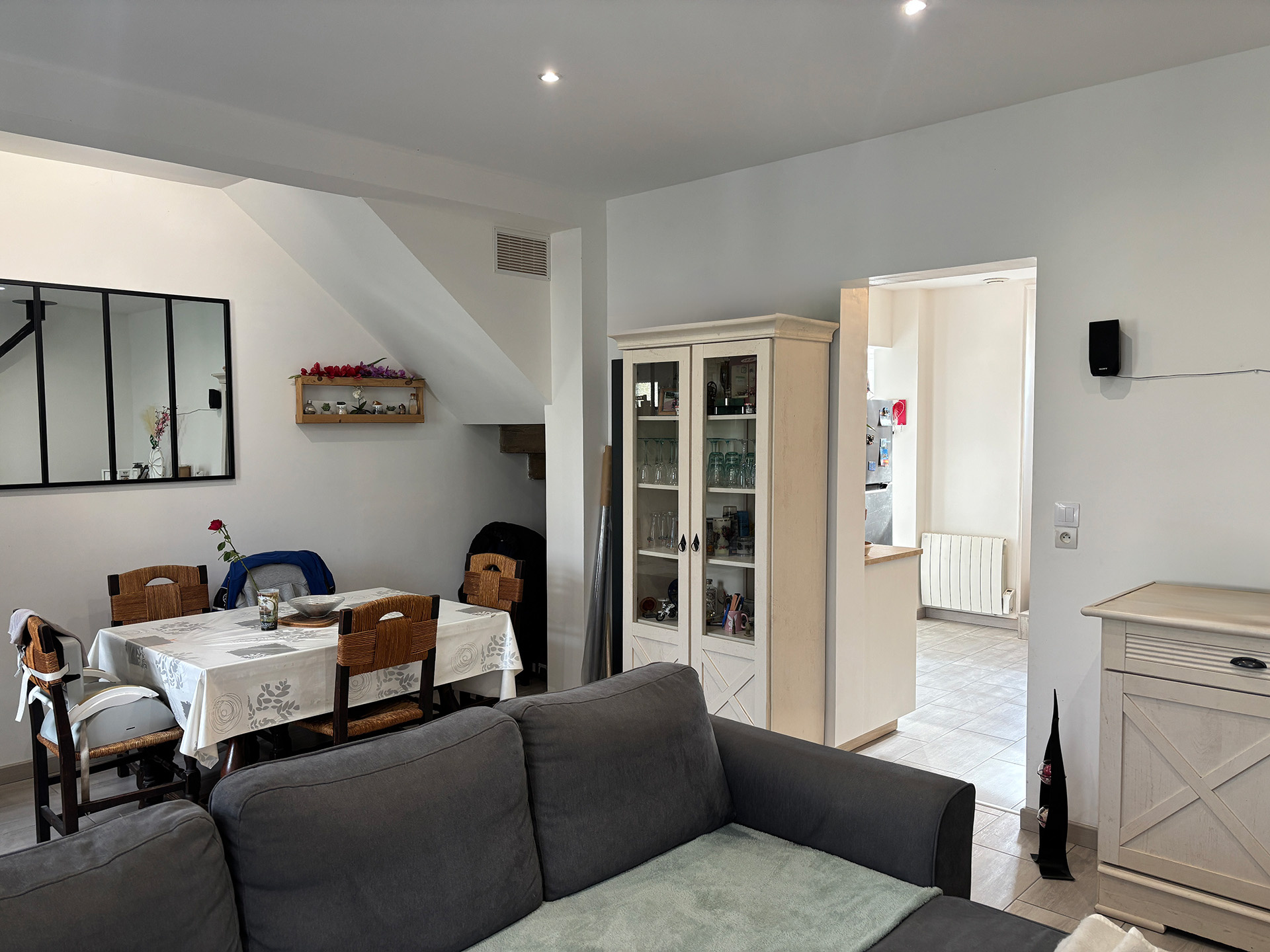 Salon-séjour lumineux avec cuisine pour un espace de vie conviv...