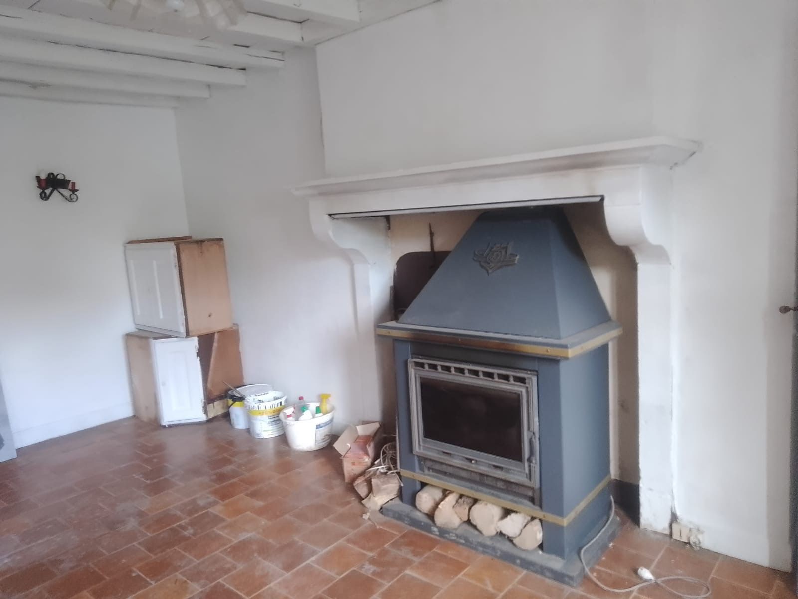 Maison en cours de rénovation comprenant au RDC : grande pièce de vie coin cuisine avec four à pain et cheminée, chambre en alcove, salle d'eau / WC.