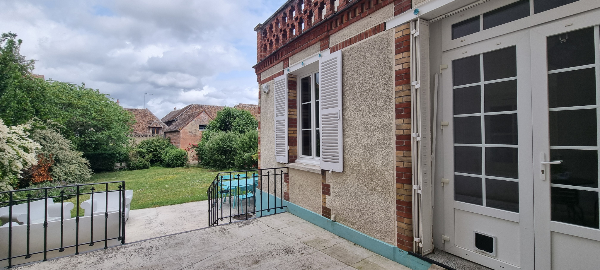 77 - Région BRAY SUR SEINE, à 5 mn de la gare et de toutes les commodités, dans village calme, sur 1431 m2 de jardin d'agrément clos, FERMETTE en pierres apparentes, entièrement restaurée dans les années 2000, bel espace de vie, lumineuse :