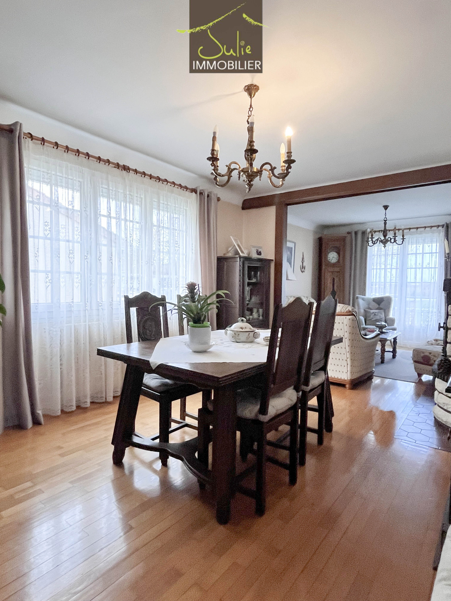 Exclusivité - Cette maison de 1981 offre 99 m2 habitables, à proximité immédiate du centre-ville, des écoles et des commerces. Dès l'entrée, vous découvrirez un hall menant vers un salon lumineux et un séjour convivial, idéal pour recevoir famille et amis...
