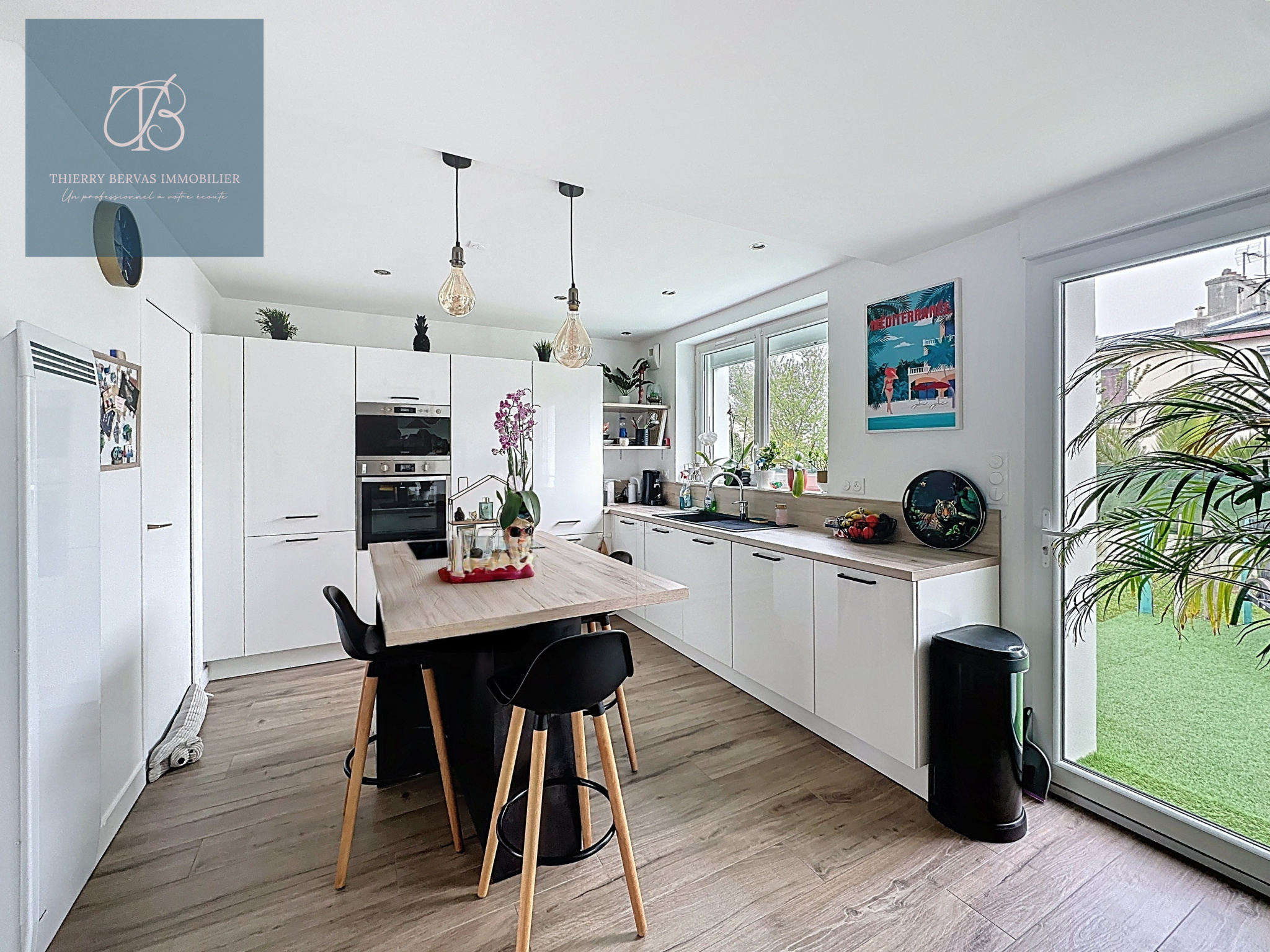 En rentrant, vous découvrirez un grand salon séjour très lumineux, une cuisine récente aménagée et équ...