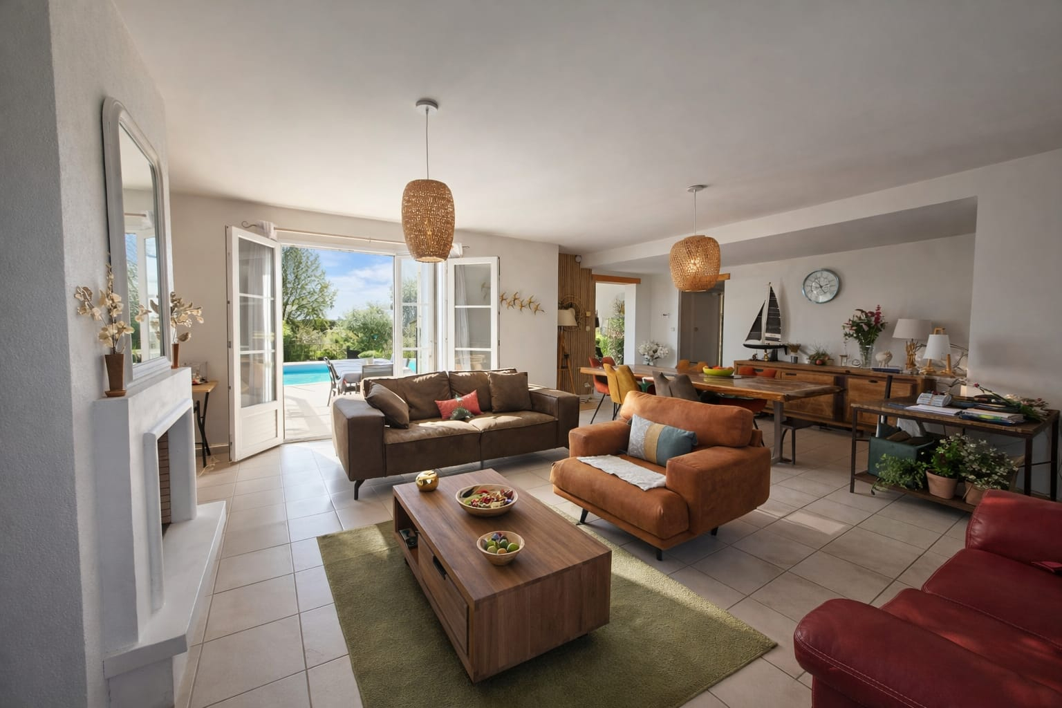 Cette maison a vraiment tout pour elle avec son magnifique séjour lumineux qui donne directement sur une superbe piscine chauffée ...